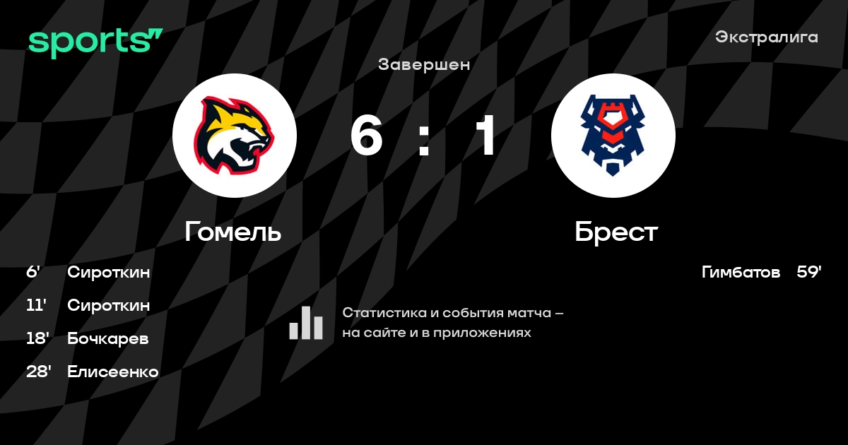В прошедшем матче в рамках турнира Экстралига состоялась встреча команд Гомель - Брест в городе Гомель (Беларусь) на стадионе Ледовый дворец Гомель (вместимость - 2700)
