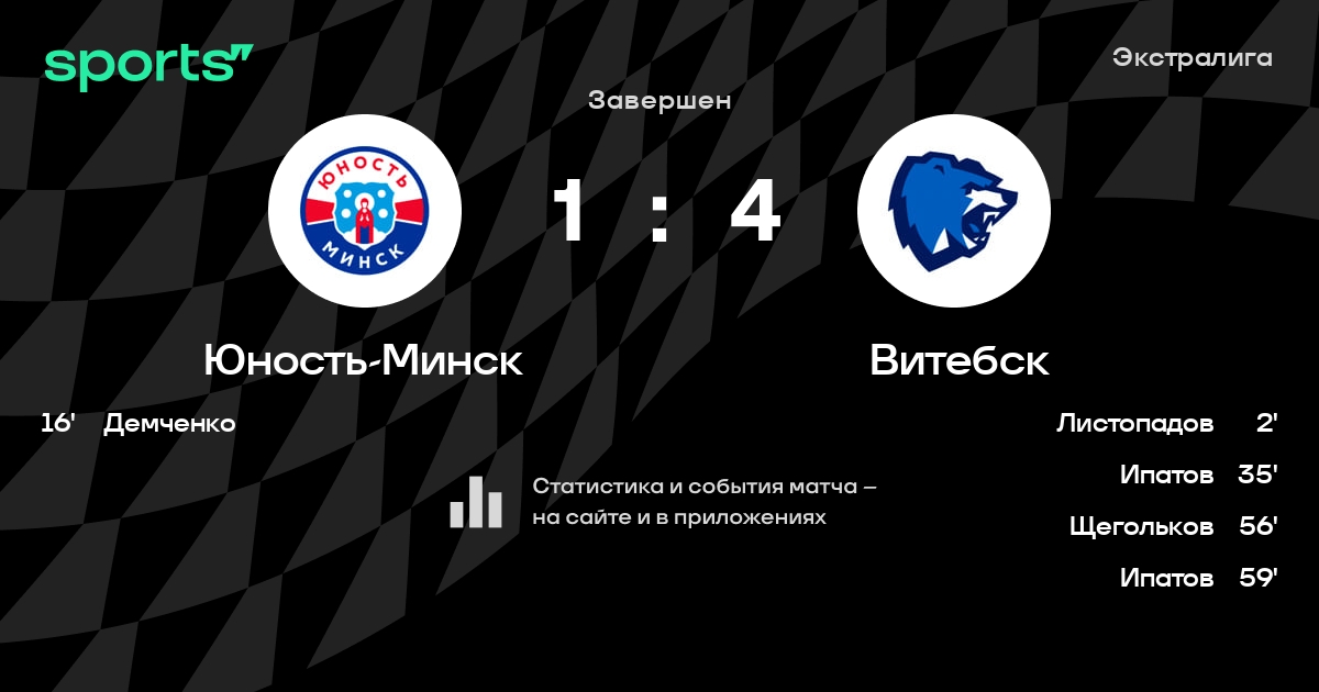 В прошедшем матче в рамках турнира Экстралига состоялась встреча команд Юность-Минск - Витебск в городе Минск (Беларусь) на стадионе Чижовка-Арена (вместимость - 9487)