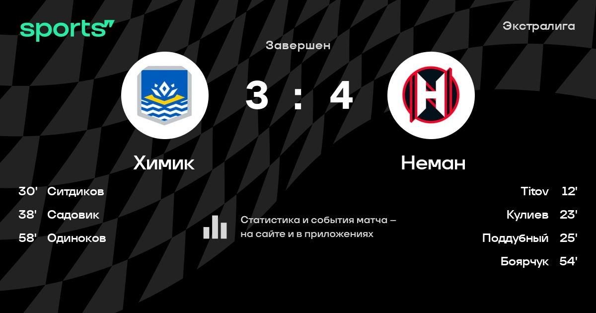 В прошедшем матче в рамках турнира Экстралига состоялась встреча команд Химик - Неман в городе Новополоцк (Беларусь) на стадионе Дворец культуры и спорта (вместимость - 1200)