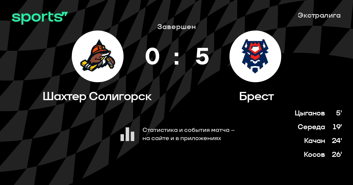 В прошедшем матче в рамках турнира Экстралига состоялась встреча команд Шахтер Солигорск - Брест в городе Солигорск (Беларусь) на стадионе Ледовый дворец спорта Солигорск (вместимость - 1800)