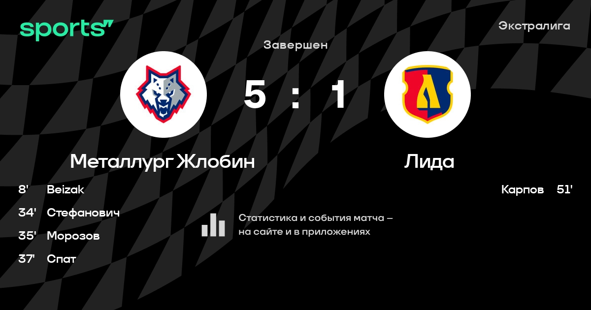 В прошедшем матче в рамках турнира Экстралига состоялась встреча команд Металлург Жлобин - Лида в городе Жлобин (Беларусь) на стадионе Ледовый дворец Металлург (вместимость - 2018)