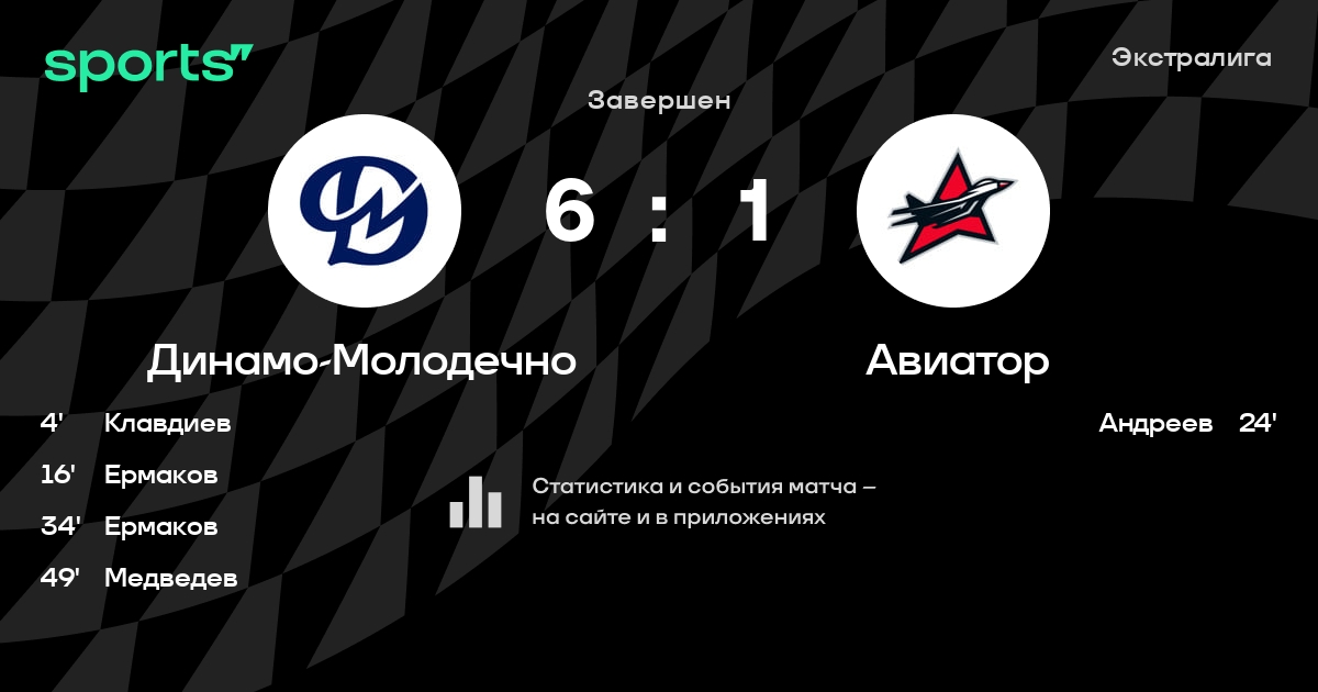 В прошедшем матче в рамках турнира Экстралига состоялась встреча команд Динамо-Молодечно - Авиатор в городе Молодечно (Беларусь) на стадионе Ледовый дворец Молодечно (вместимость - 2000)