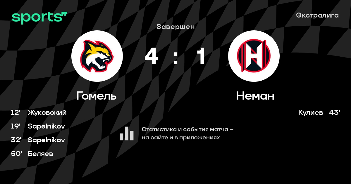 В прошедшем матче в рамках турнира Экстралига состоялась встреча команд Гомель - Неман в городе Гомель (Беларусь) на стадионе Ледовый дворец Гомель (вместимость - 2700)