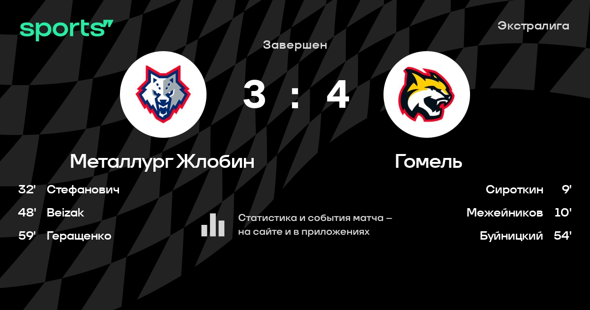 В прошедшем матче в рамках турнира Экстралига состоялась встреча команд Металлург Жлобин - Гомель в городе Жлобин (Беларусь) на стадионе Ледовый дворец Металлург (вместимость - 2018)