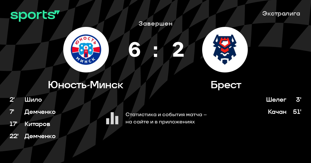 В прошедшем матче в рамках турнира Экстралига состоялась встреча команд Юность-Минск - Брест в городе Минск (Беларусь) на стадионе Чижовка-Арена (вместимость - 9487)