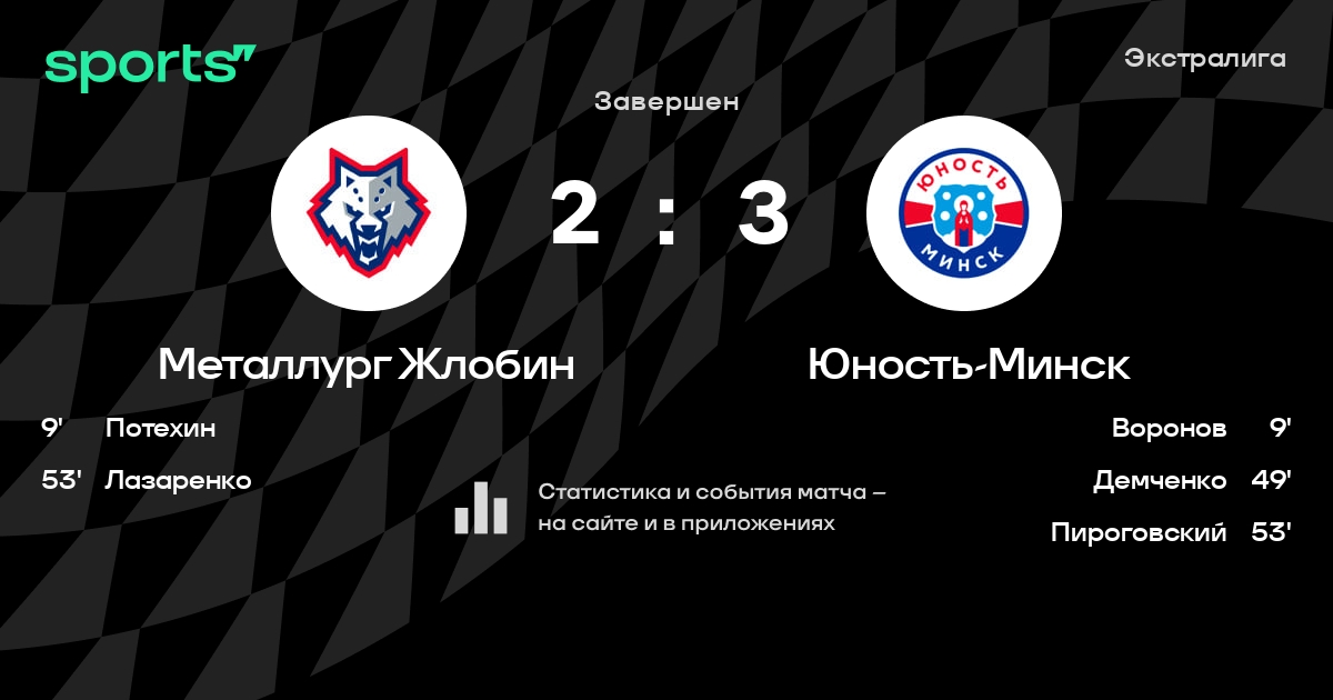В прошедшем матче в рамках турнира Экстралига состоялась встреча команд Металлург Жлобин - Юность-Минск в городе Жлобин (Беларусь) на стадионе Ледовый дворец Металлург (вместимость - 2018)