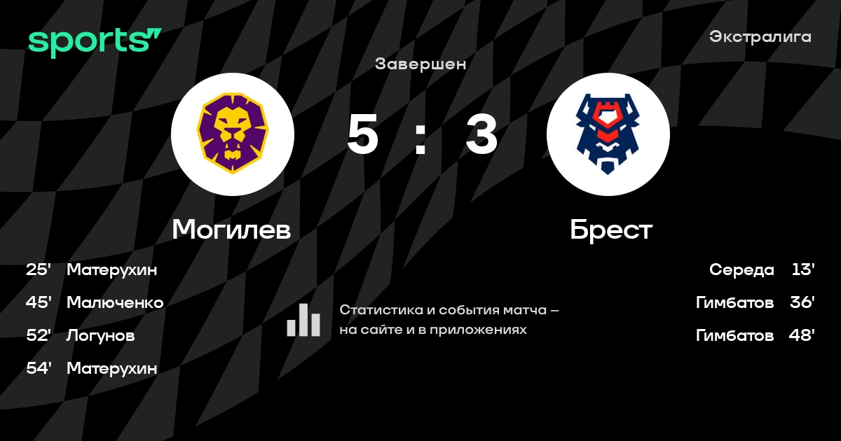 В прошедшем матче в рамках турнира Экстралига состоялась встреча команд Могилев - Брест в городе Могилев (Беларусь) на стадионе Ледовый дворец спорта Могилев (вместимость - 3048)