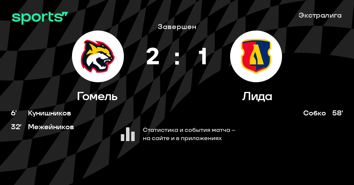 В прошедшем матче в рамках турнира Экстралига состоялась встреча команд Гомель - Лида в городе Гомель (Беларусь) на стадионе Ледовый дворец Гомель (вместимость - 2700)