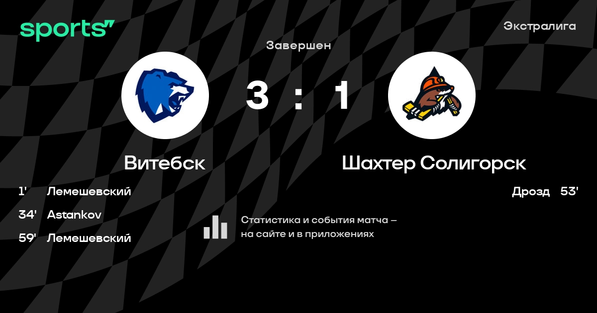 В прошедшем матче в рамках турнира Экстралига состоялась встреча команд Витебск - Шахтер Солигорск в городе Витебск (Беларусь) на стадионе Витебский дворец спорта (вместимость - 2000)