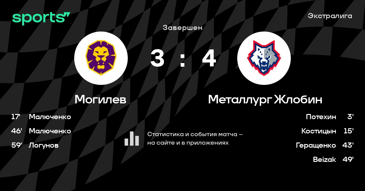 В прошедшем матче в рамках турнира Экстралига состоялась встреча команд Могилев - Металлург Жлобин в городе Могилев (Беларусь) на стадионе Ледовый дворец спорта Могилев (вместимость - 3048)