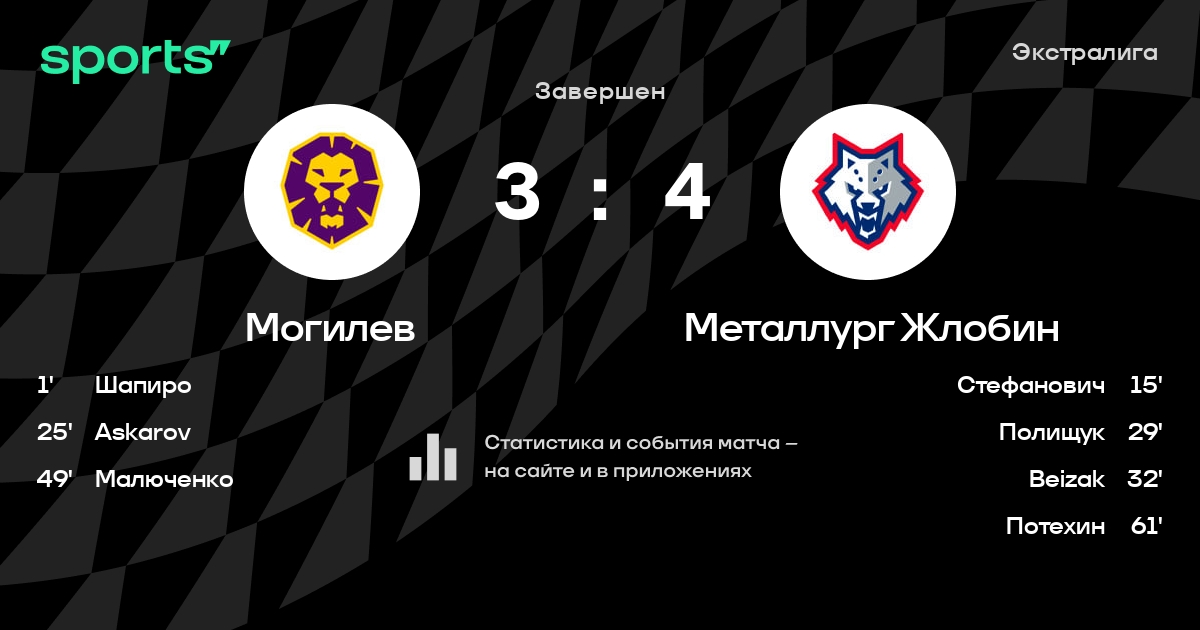 В прошедшем матче в рамках турнира Экстралига состоялась встреча команд Могилев - Металлург Жлобин в городе Могилев (Беларусь) на стадионе Ледовый дворец спорта Могилев (вместимость - 3048)