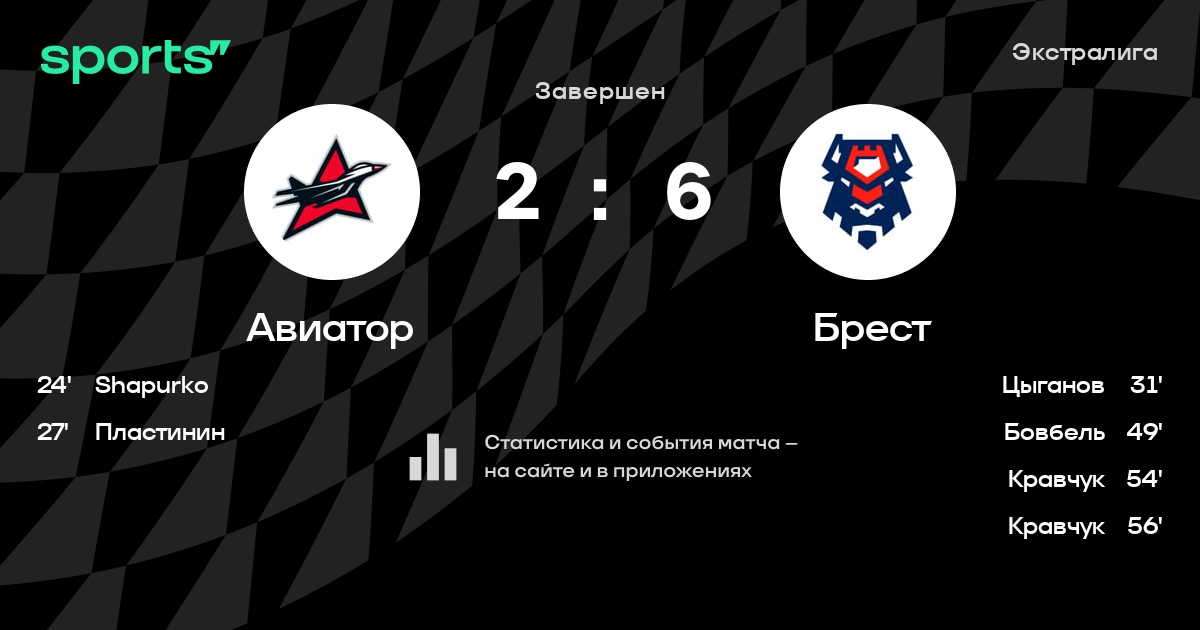 В прошедшем матче в рамках турнира Экстралига состоялась встреча команд Авиатор - Брест в городе Барановичи (Беларусь) на стадионе Ледовый дворец спорта Барановичи (вместимость - 2100)