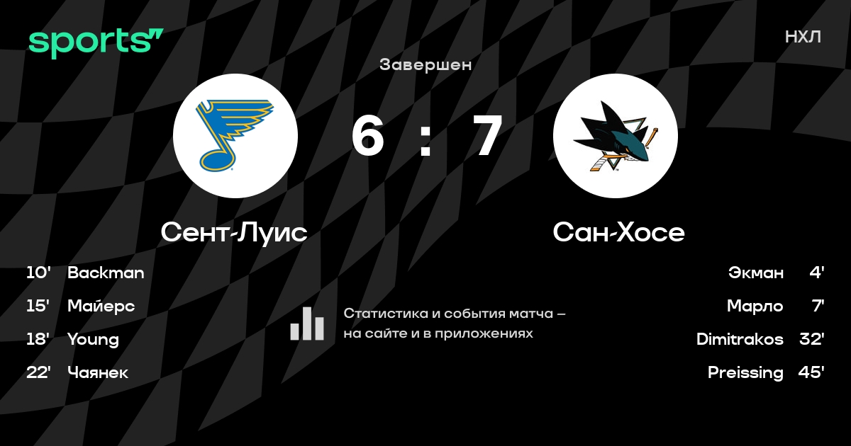 Как прошел матч, смотрите в текстовой трансляции Сент-Луис - Сан-Хосе на Sports.ru