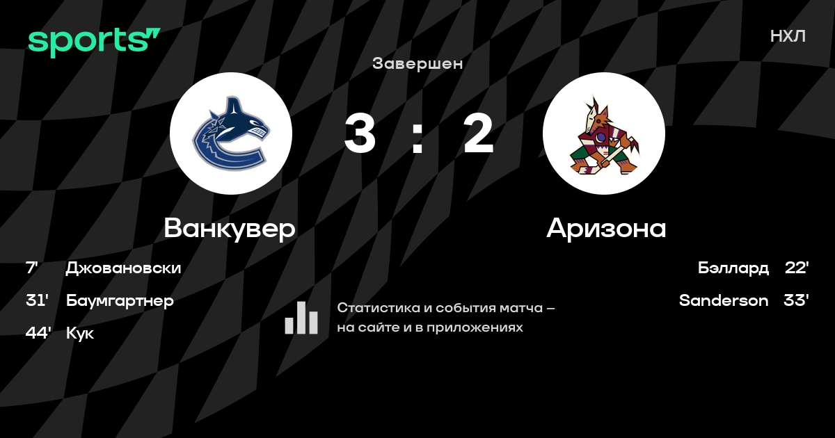 Как прошел матч, смотрите в текстовой трансляции Ванкувер - Аризона на Sports.ru