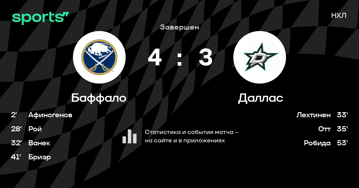 Как прошел матч, смотрите в текстовой трансляции Баффало - Даллас на Sports.ru
