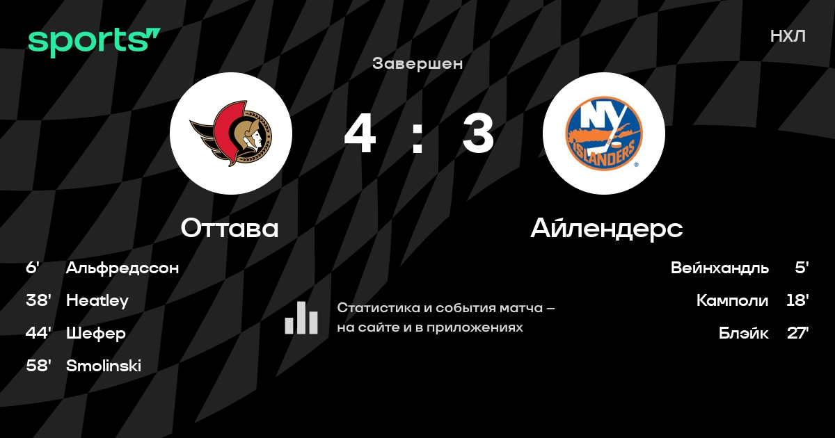 В прошедшем матче в рамках турнира НХЛ состоялась встреча команд Оттава - Айлендерс в городе Оттава (Канада) на стадионе Canadian Tire Centre (вместимость - 19153)