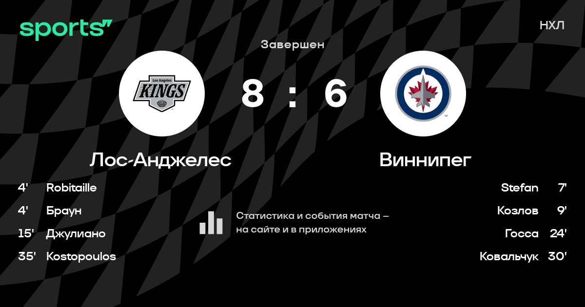 Как прошел матч, смотрите в текстовой трансляции Лос-Анджелес - Виннипег на Sports.ru