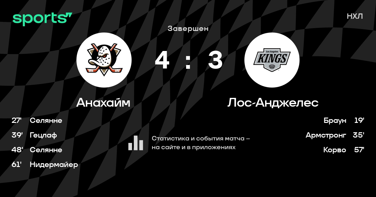 Как прошел матч, смотрите в текстовой трансляции Анахайм - Лос-Анджелес на Sports.ru