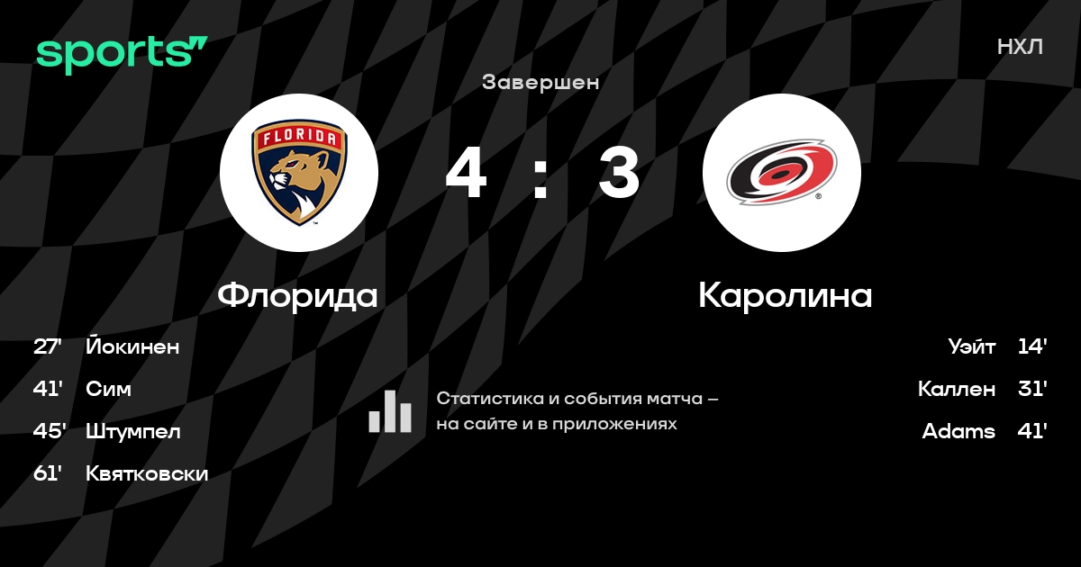 Как прошел матч, смотрите в текстовой трансляции Флорида - Каролина на Sports.ru