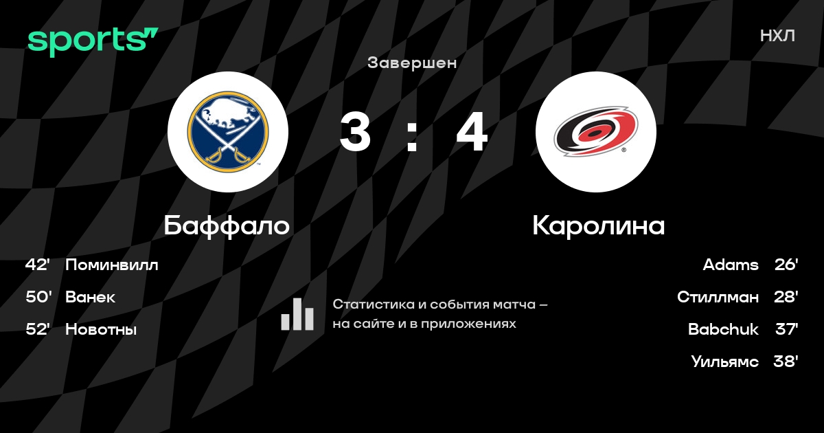 Как прошел матч, смотрите в текстовой трансляции Баффало - Каролина на Sports.ru