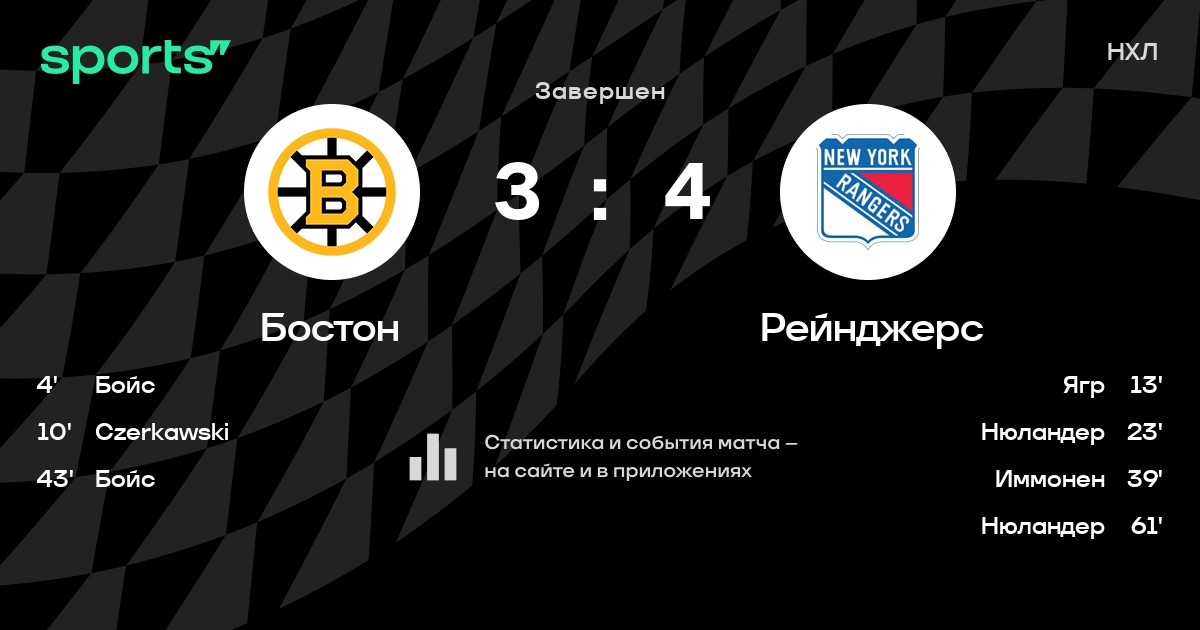 Как прошел матч, смотрите в текстовой трансляции Бостон - Рейнджерс на Sports.ru
