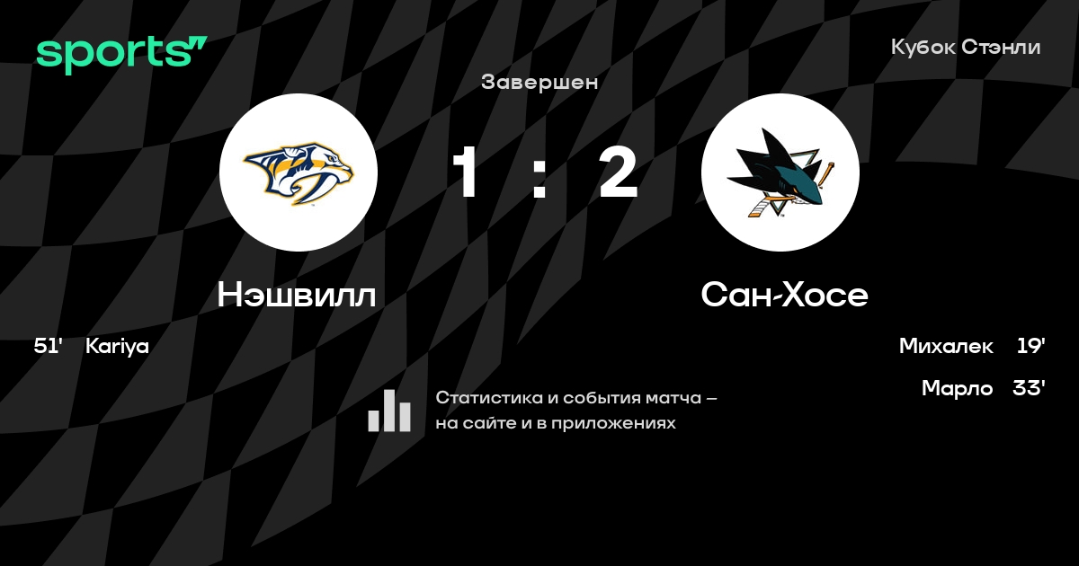 В прошедшем матче в рамках турнира Кубок Стэнли состоялась встреча команд Нэшвилл - Сан-Хосе в городе Нэшвилл (США) на стадионе Bridgestone Arena (вместимость - 17113)