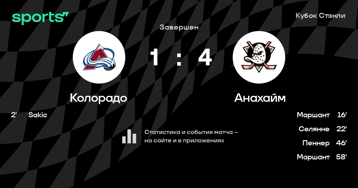 В прошедшем матче в рамках турнира Кубок Стэнли состоялась встреча команд Колорадо - Анахайм в городе Денвер (США) на стадионе Ball Arena (вместимость - 18007)