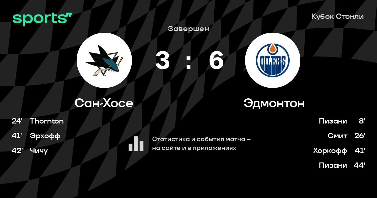 В прошедшем матче в рамках турнира Кубок Стэнли состоялась встреча команд Сан-Хосе - Эдмонтон в городе Сан-Хосе (США) на стадионе SAP Center at San Jose (вместимость - 17496)
