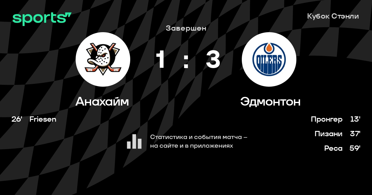 В прошедшем матче в рамках турнира Кубок Стэнли состоялась встреча команд Анахайм - Эдмонтон в городе Анахайм (США) на стадионе Honda Center (вместимость - 17174)