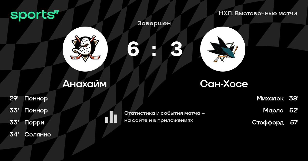 В прошедшем матче в рамках турнира НХЛ. Выставочные матчи состоялась встреча команд Анахайм - Сан-Хосе в городе Анахайм (США) на стадионе Honda Center (вместимость - 17174)