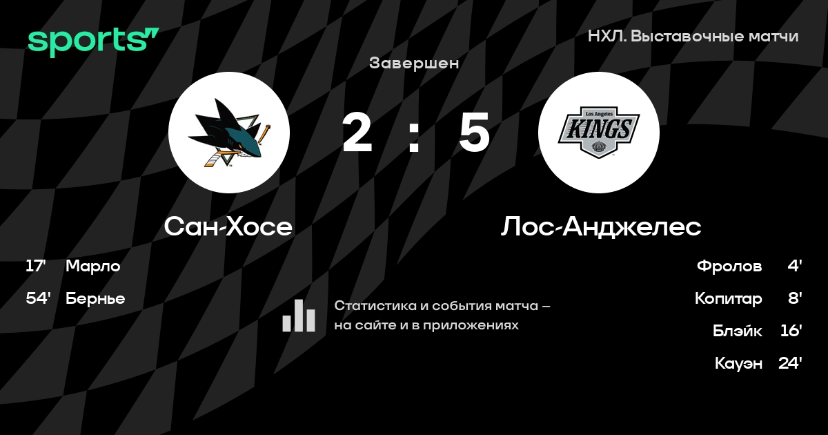 В прошедшем матче в рамках турнира НХЛ. Выставочные матчи состоялась встреча команд Сан-Хосе - Лос-Анджелес в городе Сан-Хосе (США) на стадионе SAP Center at San Jose (вместимость - 17496)