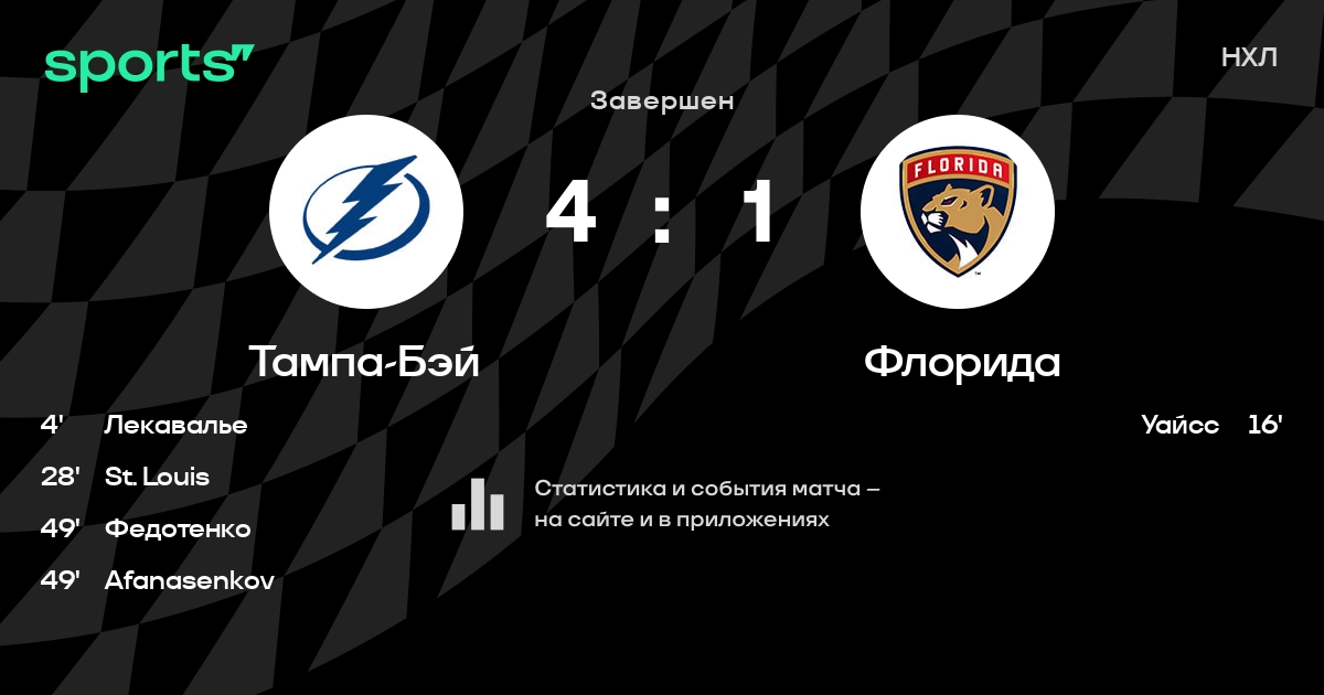 Как прошел матч, смотрите в текстовой трансляции Тампа-Бэй - Флорида на Sports.ru
