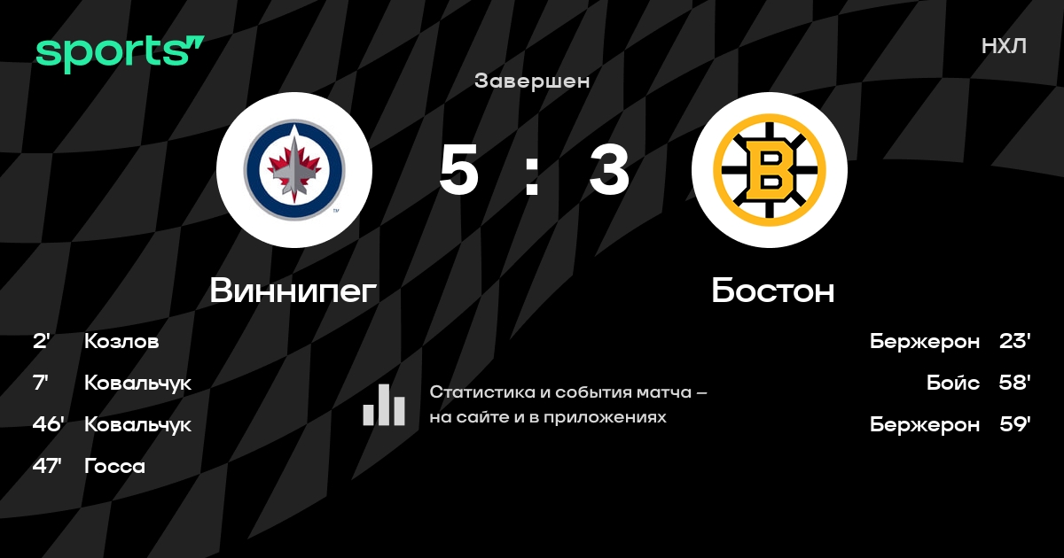 Как прошел матч, смотрите в текстовой трансляции Виннипег - Бостон на Sports.ru
