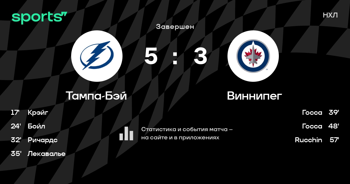 Как прошел матч, смотрите в текстовой трансляции Тампа-Бэй - Виннипег на Sports.ru