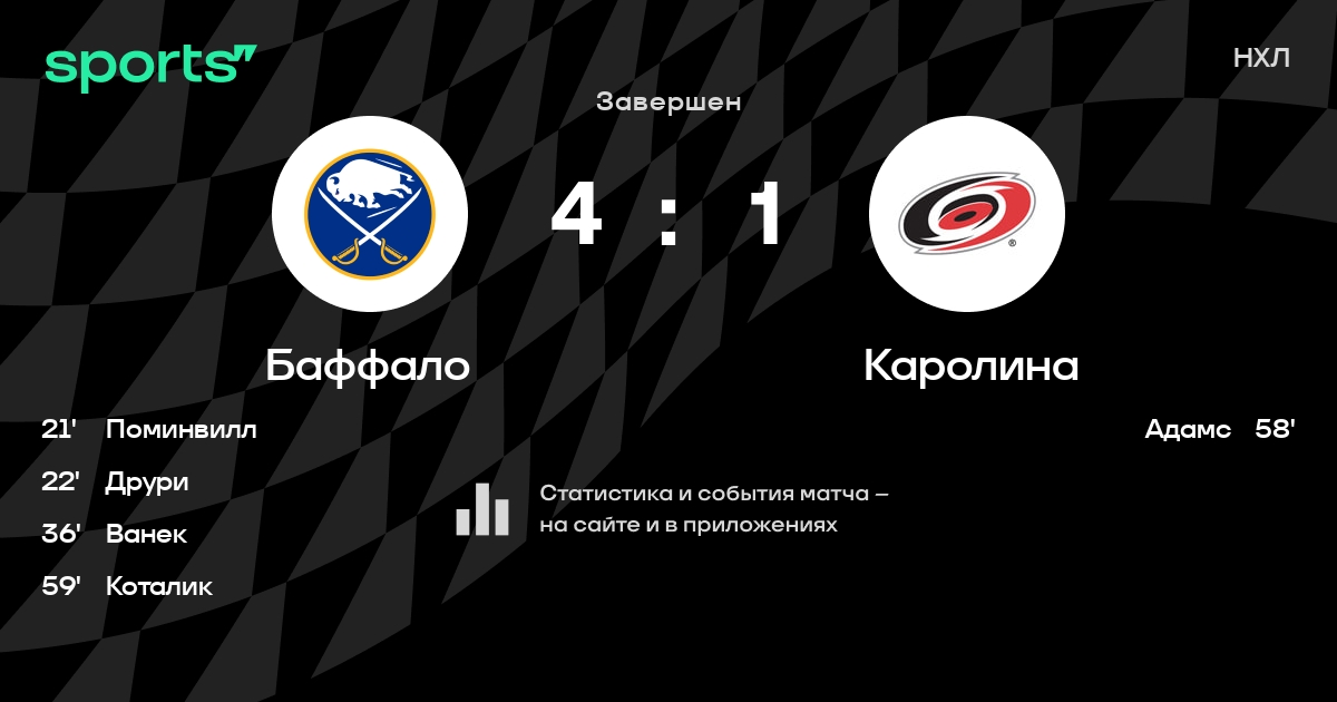 Как прошел матч, смотрите в текстовой трансляции Баффало - Каролина на Sports.ru