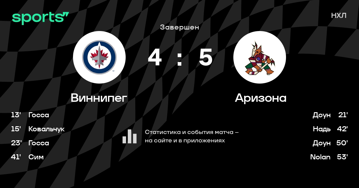 Как прошел матч, смотрите в текстовой трансляции Виннипег - Аризона на Sports.ru