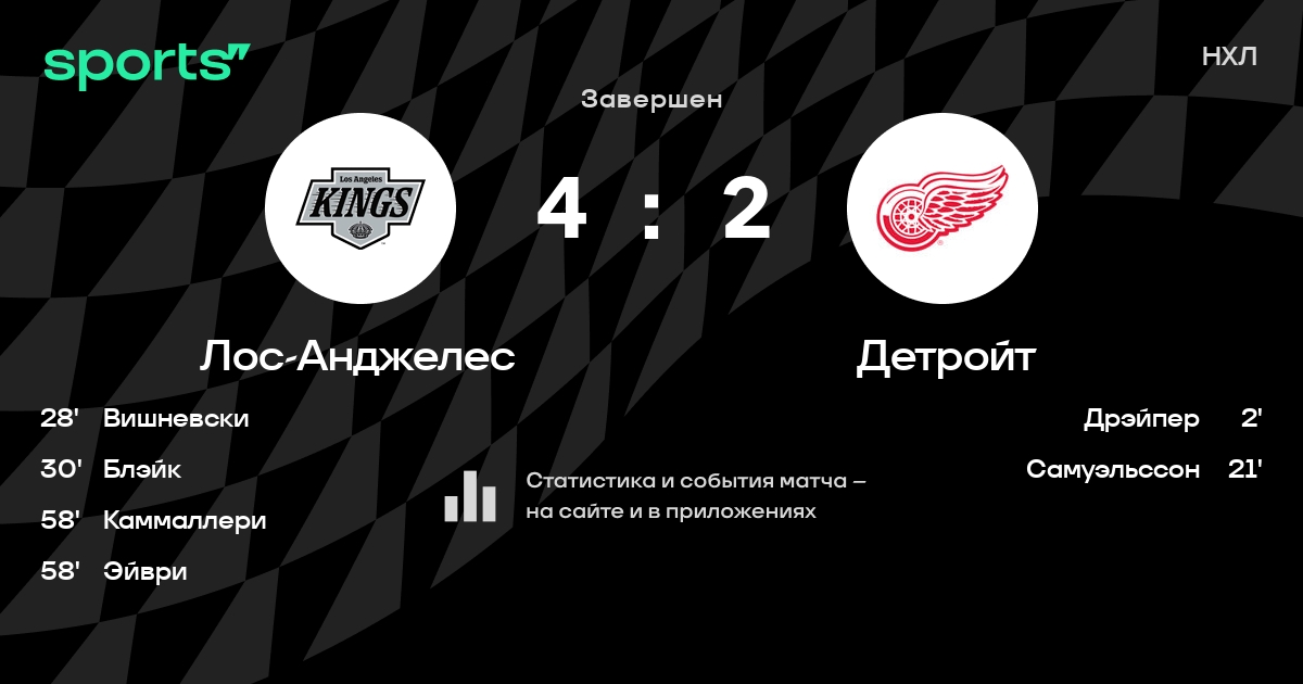 Как прошел матч, смотрите в текстовой трансляции Лос-Анджелес - Детройт на Sports.ru
