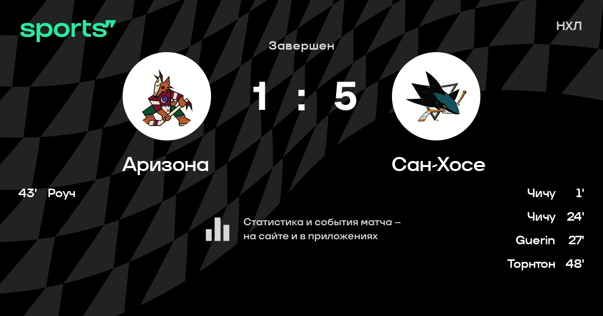 Как прошел матч, смотрите в текстовой трансляции Аризона - Сан-Хосе на Sports.ru