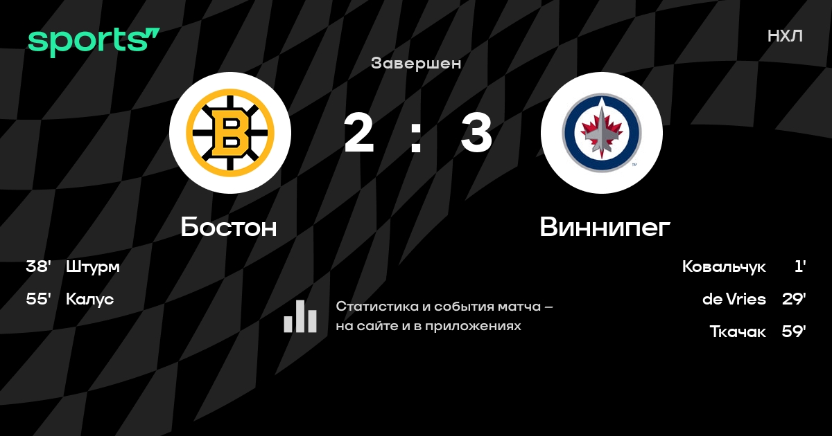 Как прошел матч, смотрите в текстовой трансляции Бостон - Виннипег на Sports.ru
