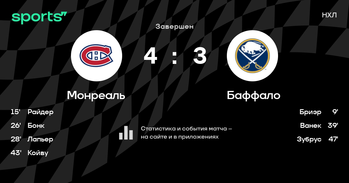 Как прошел матч, смотрите в текстовой трансляции Монреаль - Баффало на Sports.ru