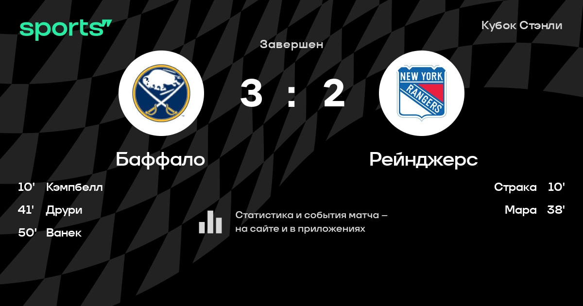 В прошедшем матче в рамках турнира Кубок Стэнли состоялась встреча команд Баффало - Рейнджерс в городе Баффало (США) на стадионе KeyBank Center (вместимость - 18690)