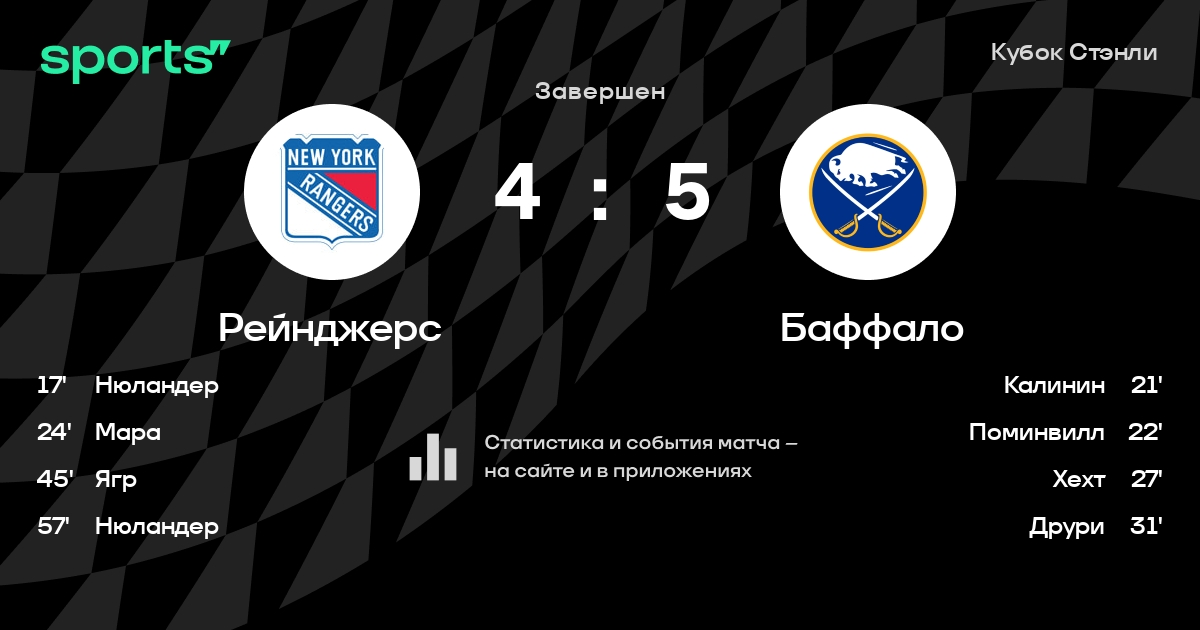Как прошел матч, смотрите в текстовой трансляции Рейнджерс - Баффало на Sports.ru