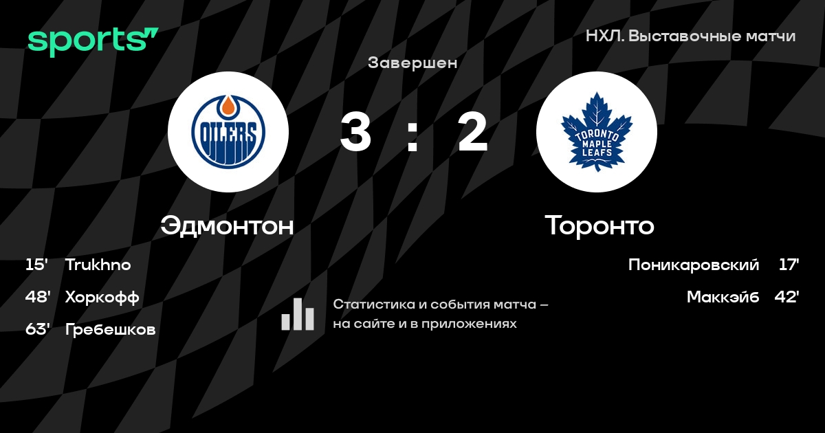 В прошедшем матче в рамках турнира НХЛ. Выставочные матчи состоялась встреча команд Эдмонтон - Торонто в городе Эдмонтон на стадионе Rexall Place
