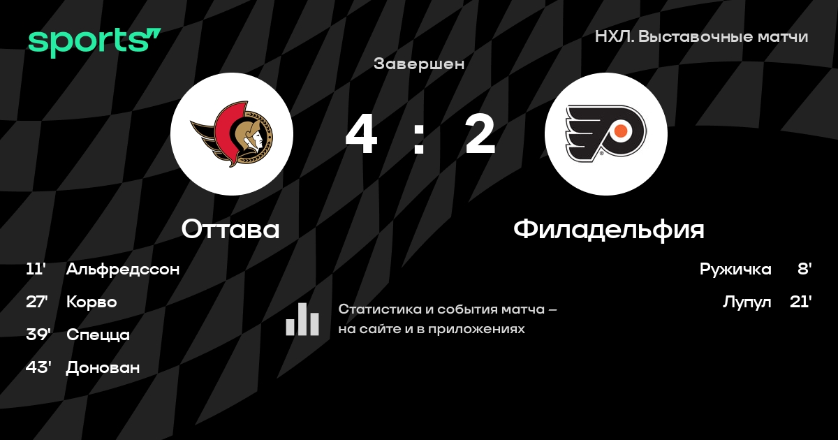 В прошедшем матче в рамках турнира НХЛ. Выставочные матчи состоялась встреча команд Оттава - Филадельфия в городе Оттава (Канада) на стадионе Canadian Tire Centre (вместимость - 19153)