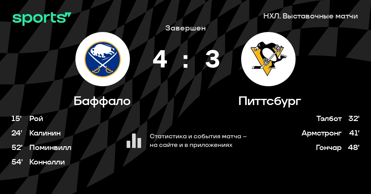 Как прошел матч, смотрите в текстовой трансляции Баффало - Питтсбург на Sports.ru