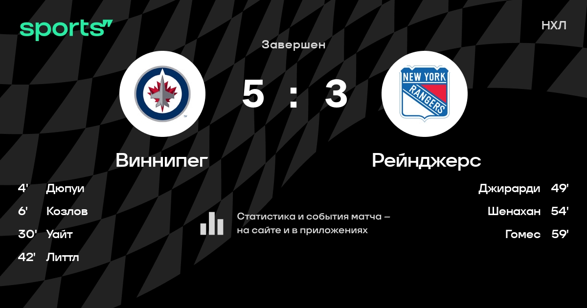 Как прошел матч, смотрите в текстовой трансляции Виннипег - Рейнджерс на Sports.ru