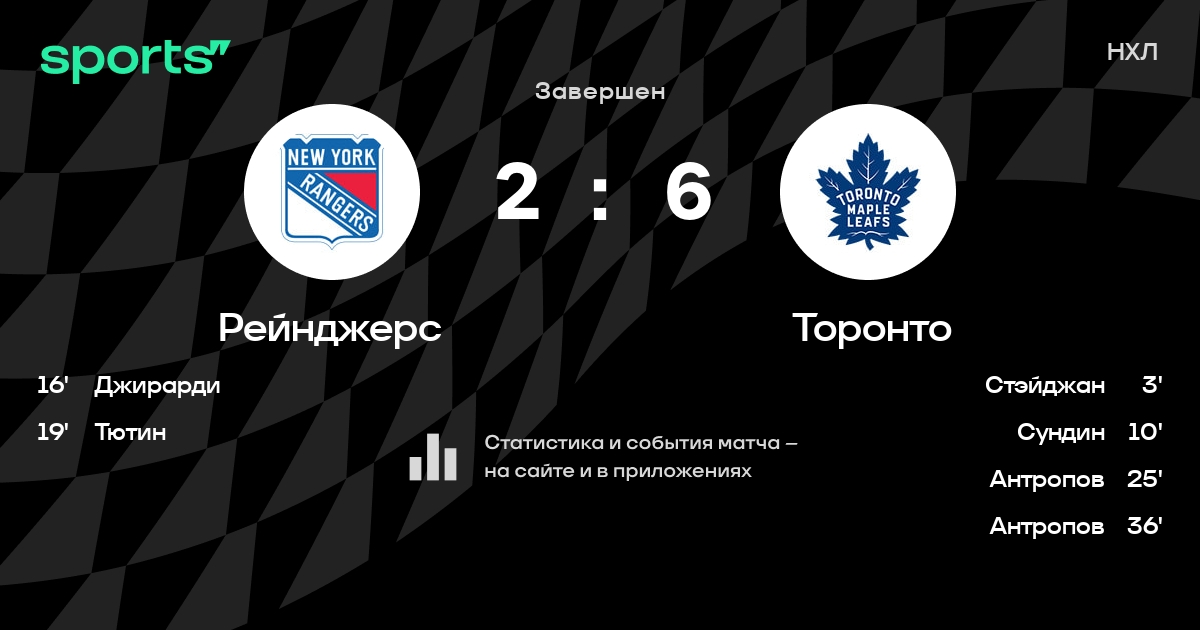 Как прошел матч, смотрите в текстовой трансляции Рейнджерс - Торонто на Sports.ru