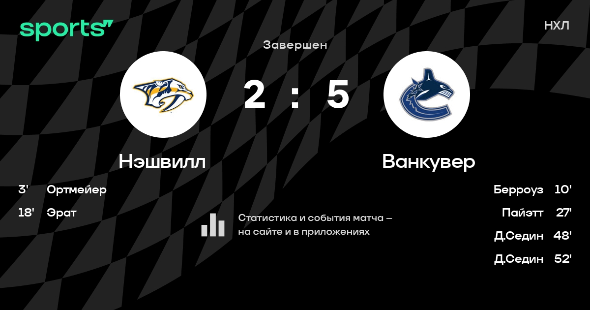 Как прошел матч, смотрите в текстовой трансляции Нэшвилл - Ванкувер на Sports.ru