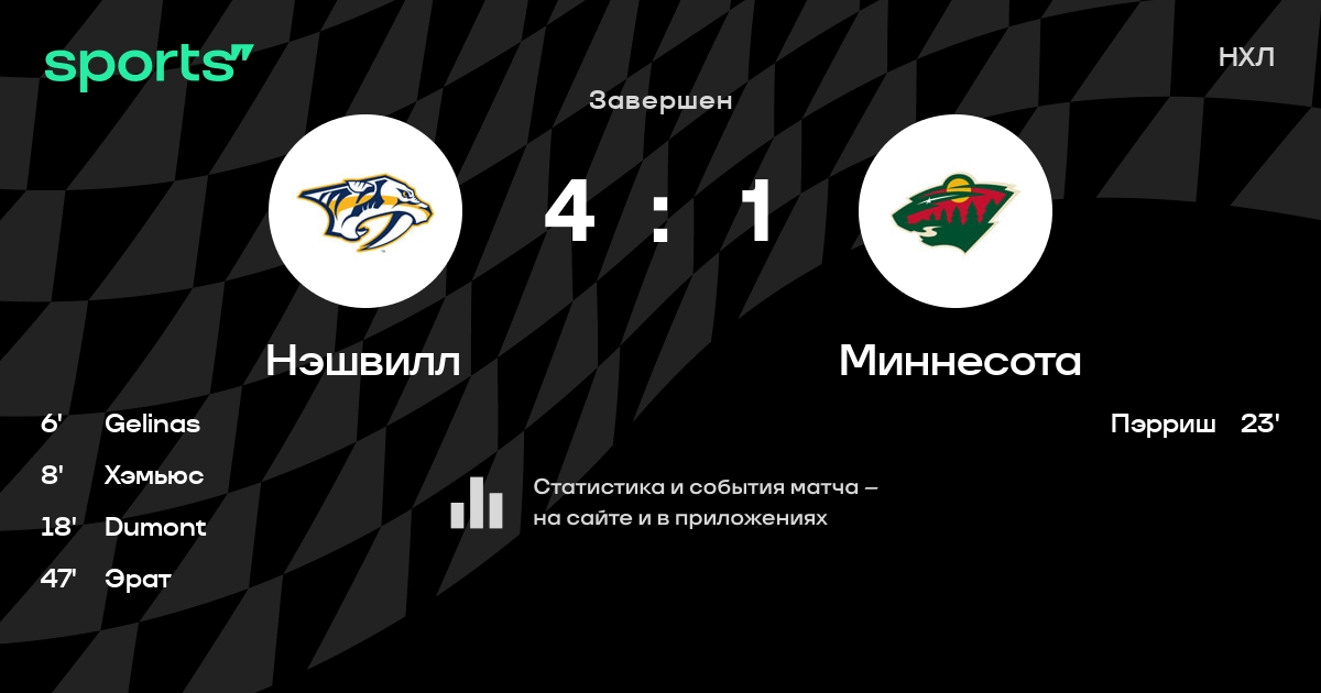 Как прошел матч, смотрите в текстовой трансляции Нэшвилл - Миннесота на Sports.ru