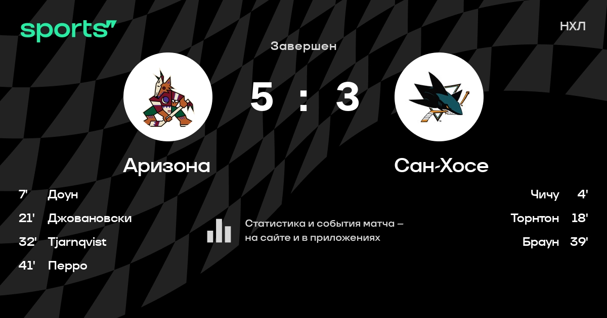 Как прошел матч, смотрите в текстовой трансляции Аризона - Сан-Хосе на Sports.ru